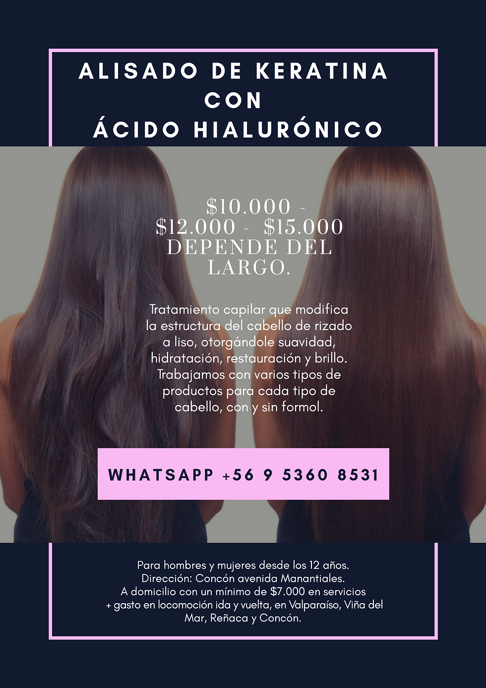 Te damos la bienvenida a Distribuidora de Productos capilares & Servicios de belleza. Somos una tienda online dedicada a la venta de productos capilares hidratantes y alisantes, realizamos entregas personales en Concón, Viña del mar y envíos a todo Chile vía Starken o Chilexpress. Además estamos capacitados para realizar servicios a domicilio de limpieza facial, lifting de pestañas, perfilado y planchado de cejas, alisados permanentes y masajes de relajación para damas, dentro de la quinta región, específicamente en Concón y Viña del mar.